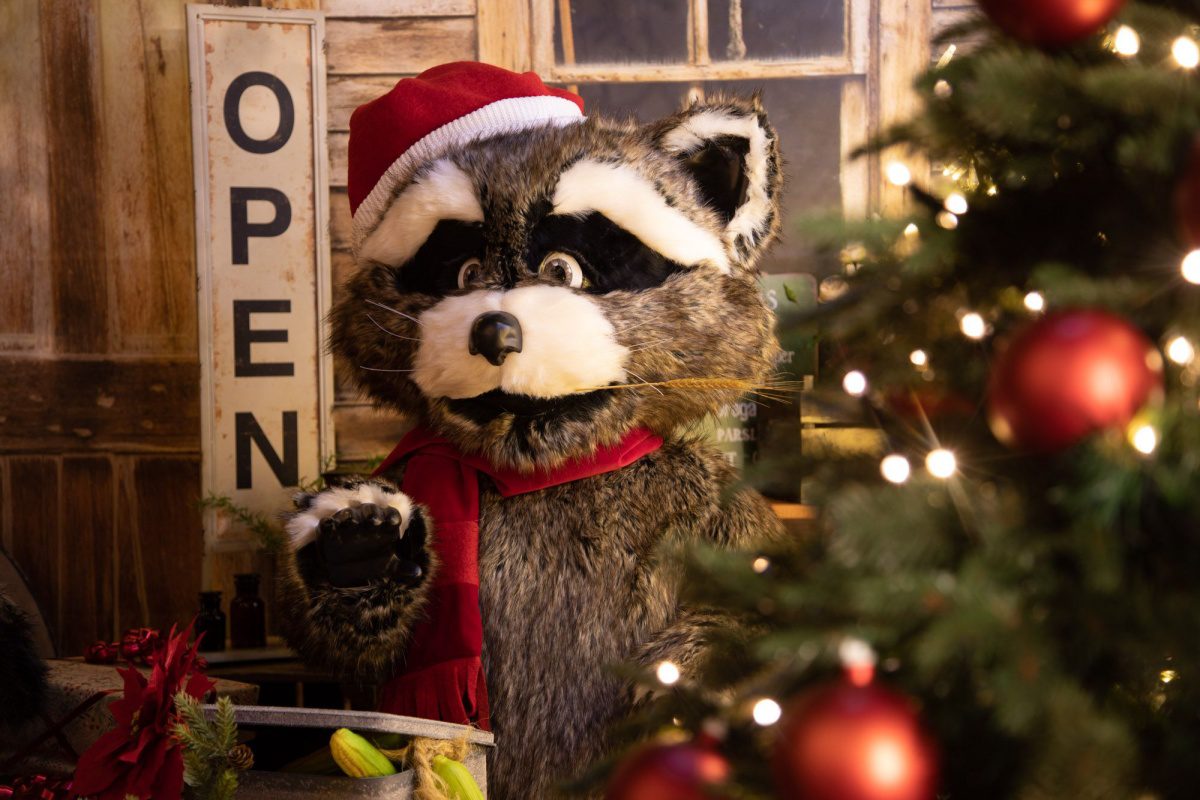 Get in the Christmas spirit with a joyful and uplifting raccoon band playing Christmas songs and rocking around. This band features synchronized and sound-controlled movements to music, with the singing raccoon having synchronized mouth movements and moving eyebrows.