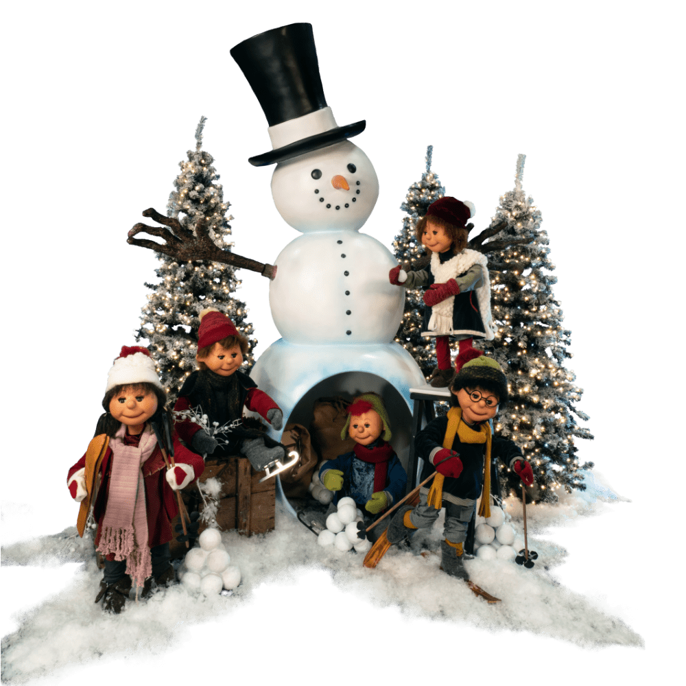 Each child animatronic has it’s own movements, and the snowman’s arms rotate!