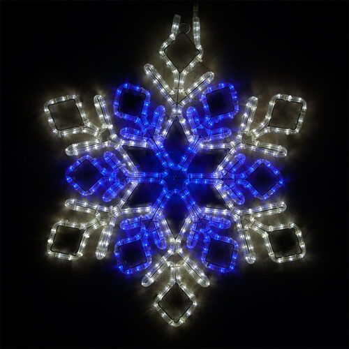 This double diamond snowflake measures 28″ and is made from LED rope light. 120 volts, 3,000 hour average life-span. Add multiple snowflakes to your building front to really make it shine!