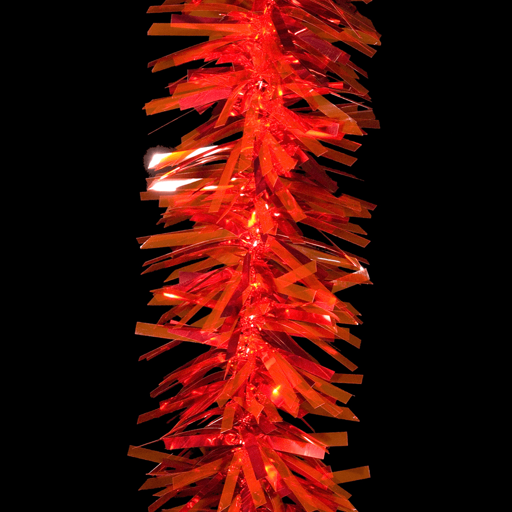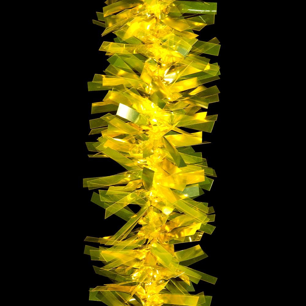 This PVC rope garland is available in 6″, 9″, and 10.5″ cuts. This style of garland is solid and translucent garland spun together.
