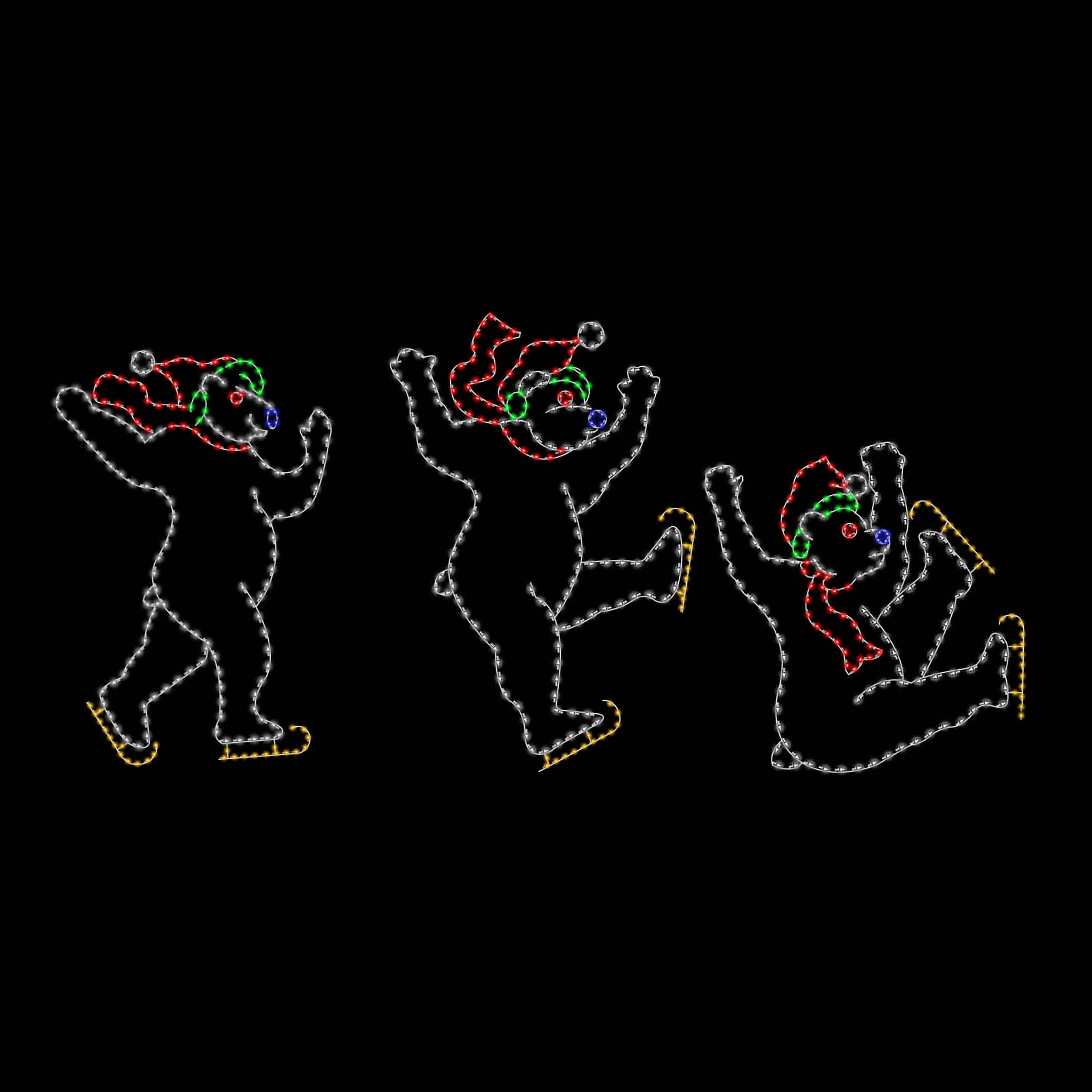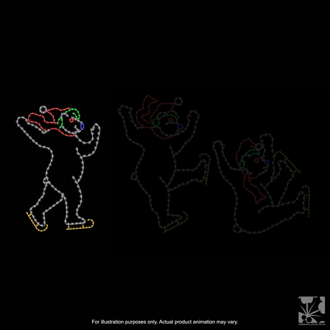 This large ice skating polar bear animated ground display is made from a durable metal frame, and long-lasting, commercial grade C7 LED lights.