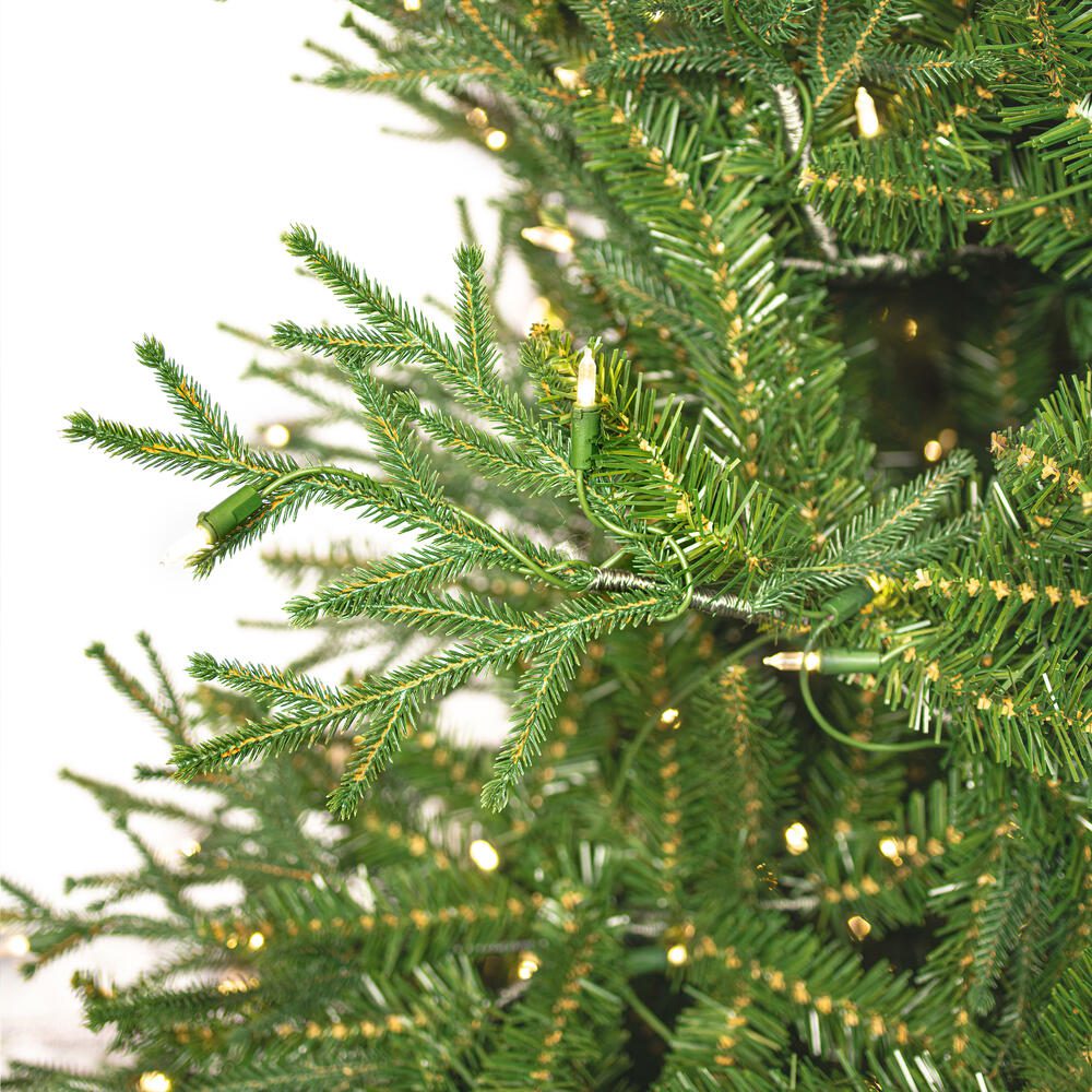 The Tiffany Fraser Fir artificial Christmas tree from Vickerman® is an incredible tree made with a beautiful blend of PE and PVC needles on metal hinged branches. This tree comes either pre-lit with Dura-Lit® warm white LED lights or unlit for complete light customization. Available in 6.5′, 7.5′, and 9′ tall. Select a tree size to view detailed specifications.