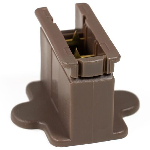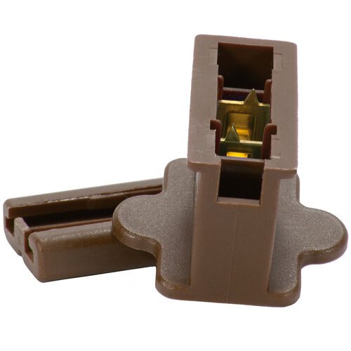 A brown female zip plug for commercial Christmas light wire.