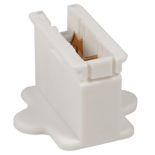 A white female zip plug for commercial Christmas light wire.
